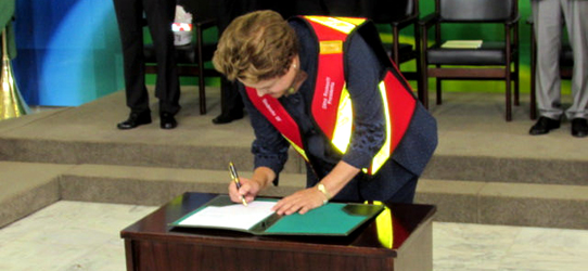 A presidenta Dilma Roussef sancionou em 18/06, no Salão Nobre do Palácio do Planalto, em Brasília (DF), o Projeto de Lei 2865/2011 do senador Marcelo Crivella, que reconhece as profissões de motofretista e mototaxista de todo Brasil como atividades perigosas.